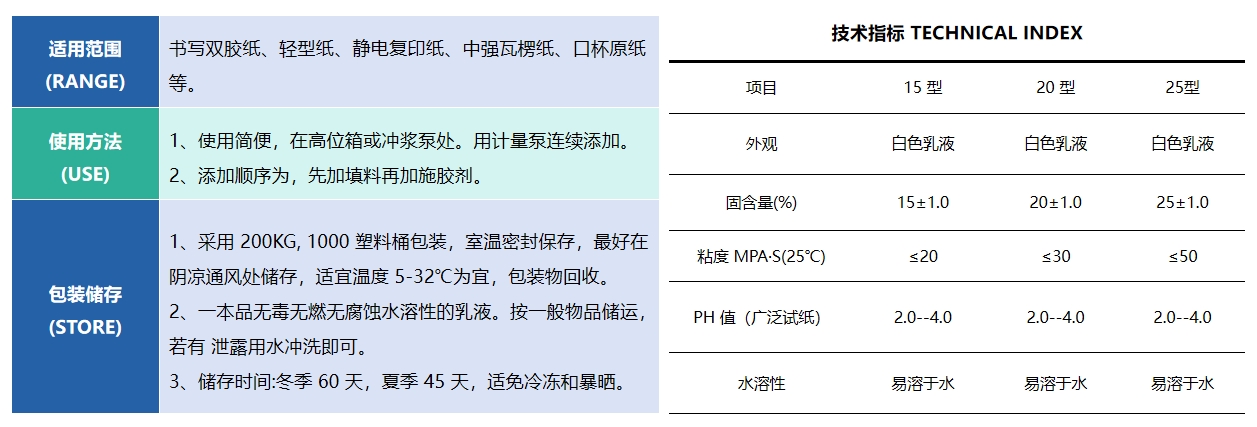HQ-N9133 中性施膠劑,是采用特殊工藝熬合而成的一種自留著漿內(nèi)施膠劑。它的突出特點(diǎn)是:大大簡(jiǎn)化了施膠工藝,提高濕纖維的結(jié)合強(qiáng)度和成紙的干強(qiáng)效果,經(jīng)過(guò)幾年的更新改進(jìn),也大大地短了熟化時(shí)間。適合不同生產(chǎn)環(huán)境,應(yīng)用效果好、成本低、熟化快、成紙強(qiáng)度高,是漿內(nèi)施膠劑的好選擇。